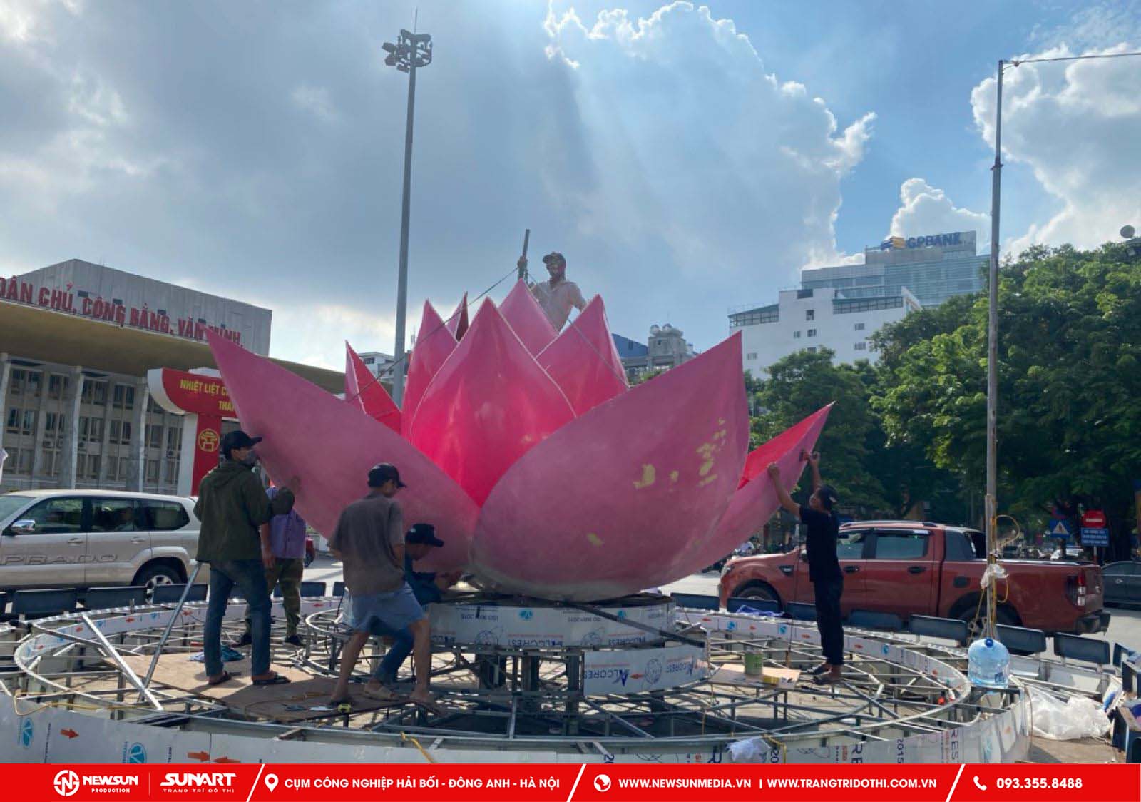 Ưu điểm của composite là nhẹ, dễ thi công, nhưng vẫn bền chắc trước điều kiện thời tiết ngoài trời. Sunart đã thực hiện nhiều hạng mục trang trí bằng composite tại các bùng binh, trong đó có mô hình hoa sen nghệ thuật quy mô lớn. Chúng tôi có khả năng gia công chi tiết phức tạp, lắp đặt nhanh gọn ngay tại khu vực giao thông đông đúc, đảm bảo công trình vừa đẹp mắt vừa an toàn.